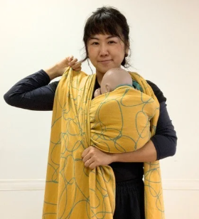 ベビーラップは、一枚の長い布を身体に巻いて赤ちゃんをだっこする抱っこ紐です。
