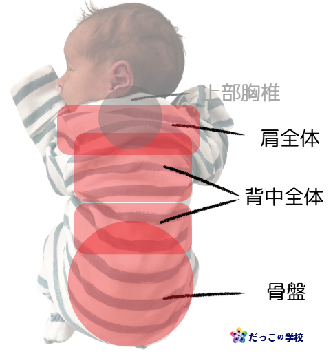 首がすわってきたら、骨盤、背中、肩全体をしっかり支えることで、安全に縦抱っこ紐を使うことができます。