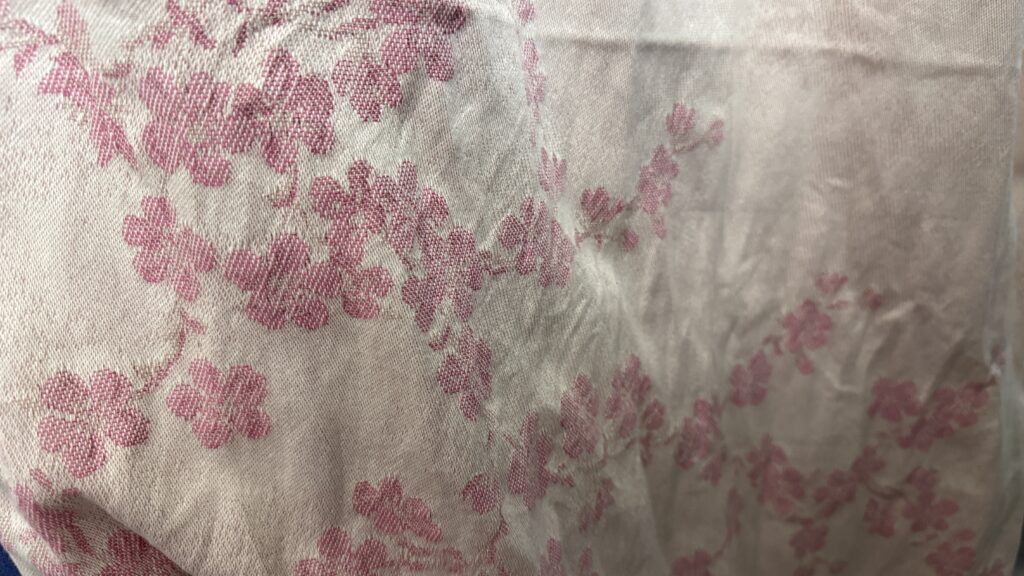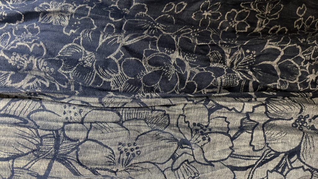 裏表の色が反転するような織り(ジャガード織)でも、さきほどの写真の青藍のようなシワ感にはなりにくそうな花月。