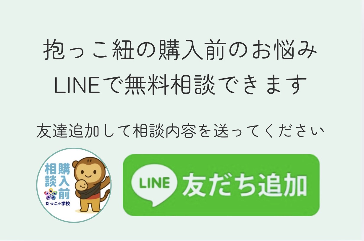 公式LINEにて、ベビーラップやその他抱っこ紐の購入前相談に無料でおこたえしています。「だっこの学校LINE」を友だち追加してお気軽にご相談ください。